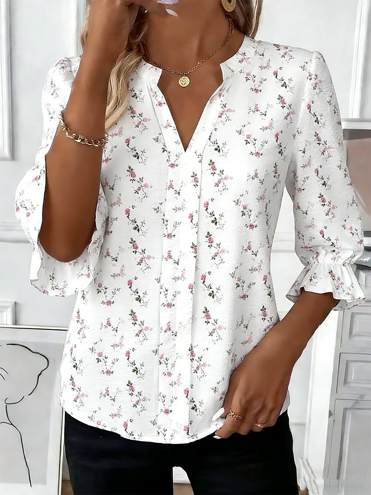 V Neck Half Sleeve Floral Regular Regular Fit Shirt For Women
