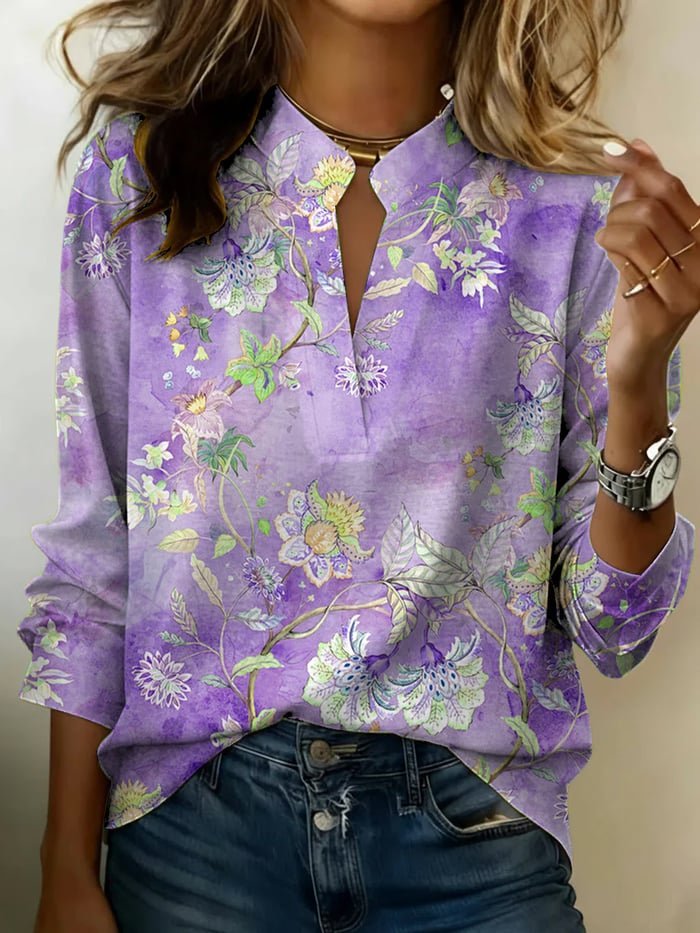 V Neck Long Sleeve Floral Regular Loose Blouse For Women