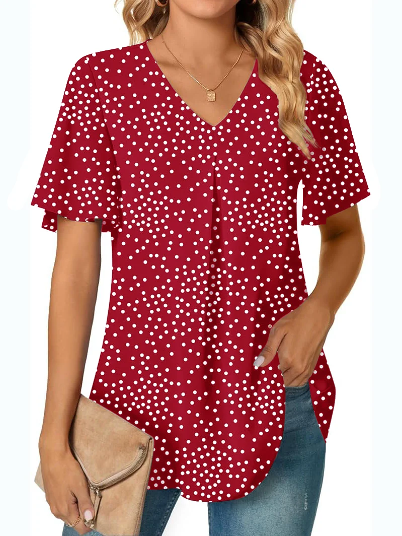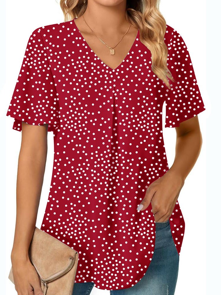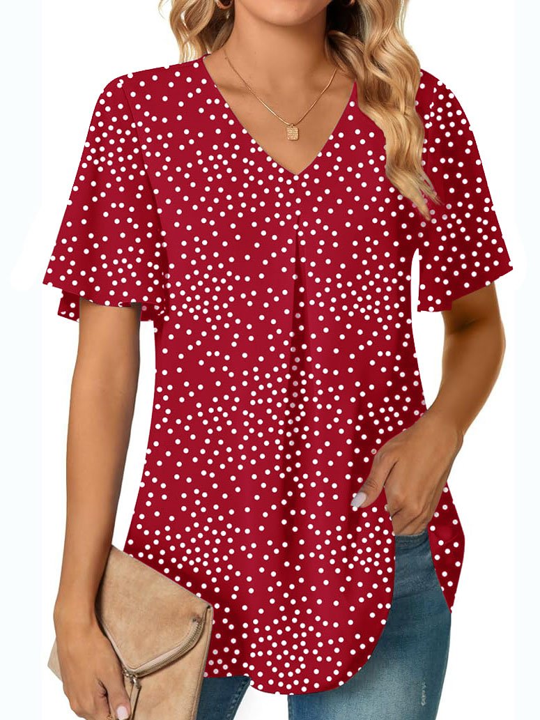 V Neck Short Sleeve Floral Regular Micro-Elasticity Regular Fit Shirt For Women