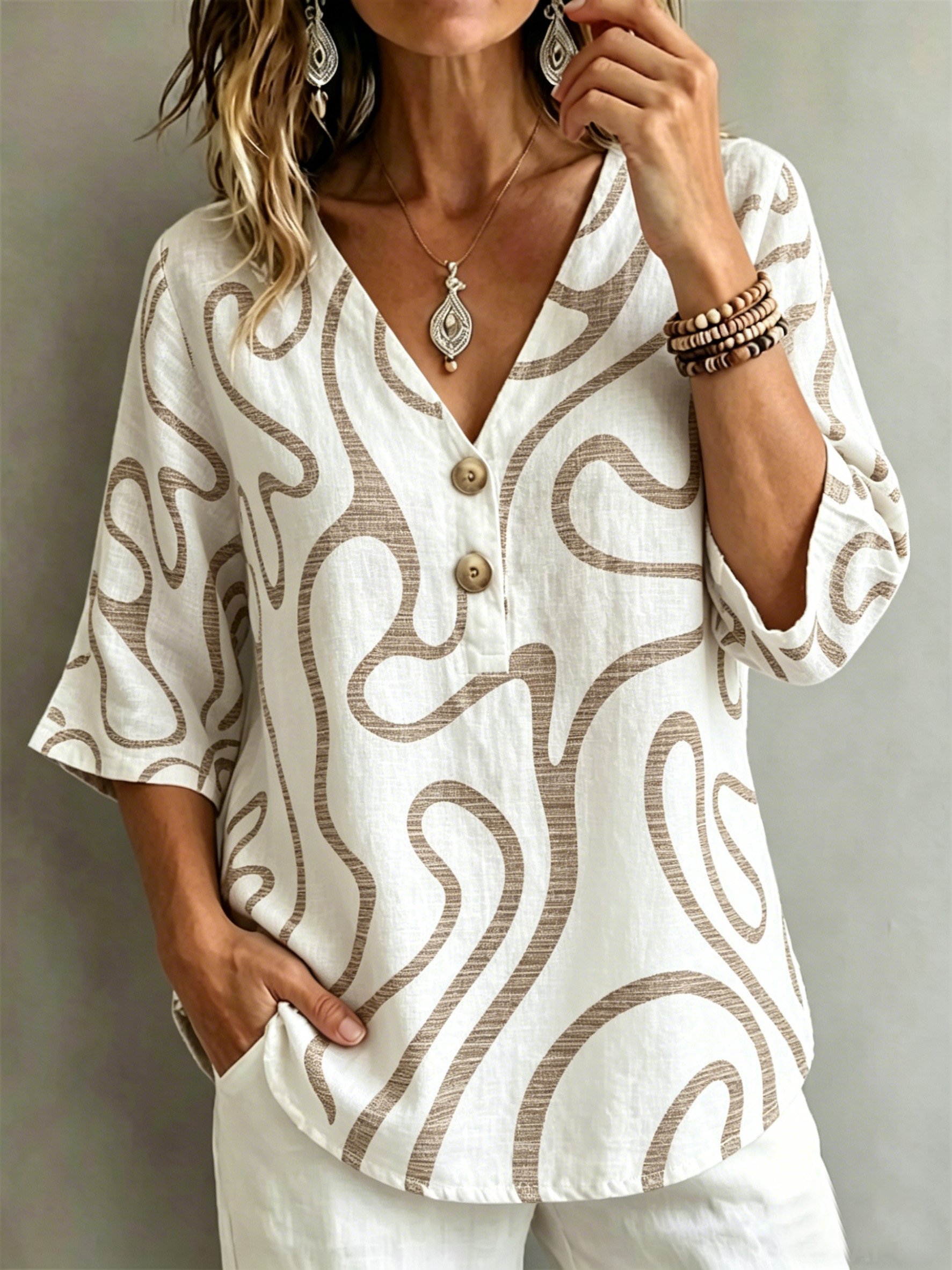V Neck Short Sleeve Zebra Regular Loose Blouse For Women