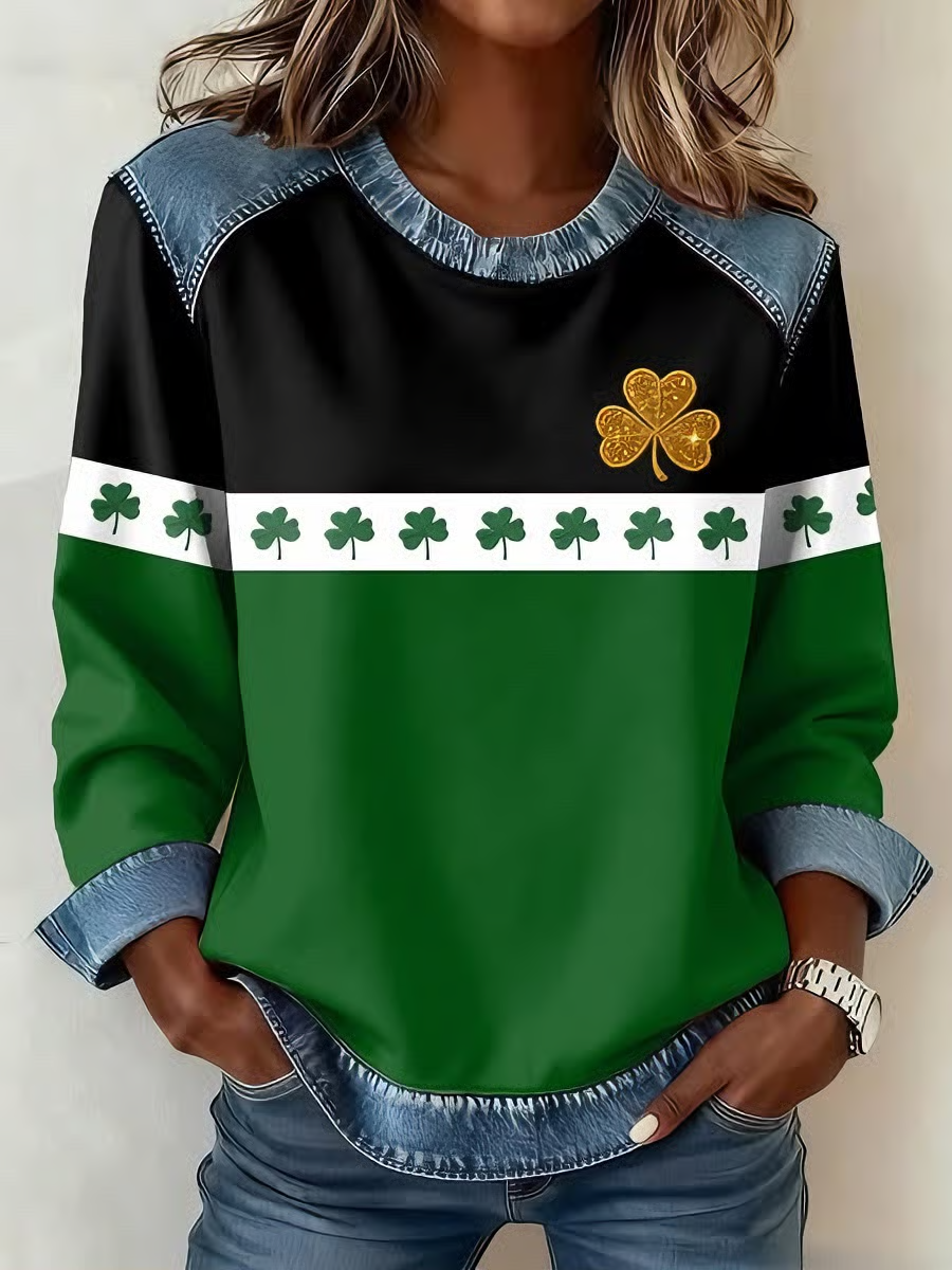 Vintage Crew Neck Shamrock Sweatshirt Printing