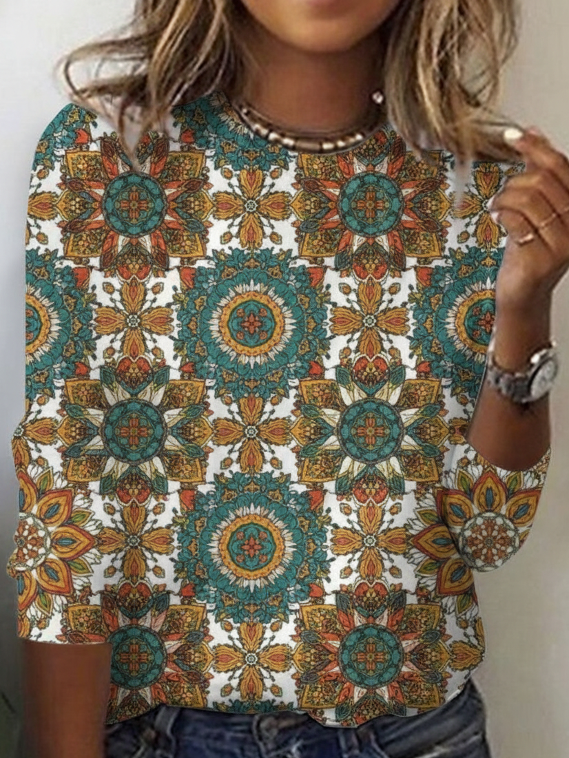 Vintage Geometric Crew Neck Long Sleeve T-shirt