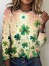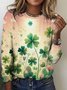 St. Patrick's Day Leaf Pattern Crew Neck Long Sleeve T-shirt