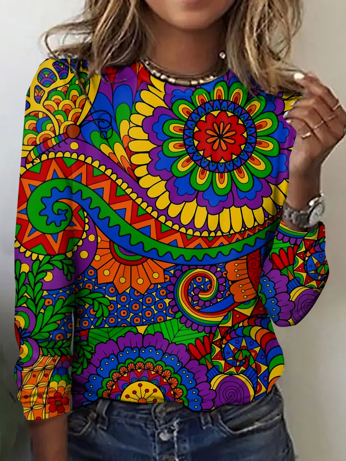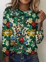 Vintage Plaid Crew Neck Long Sleeve T-shirt