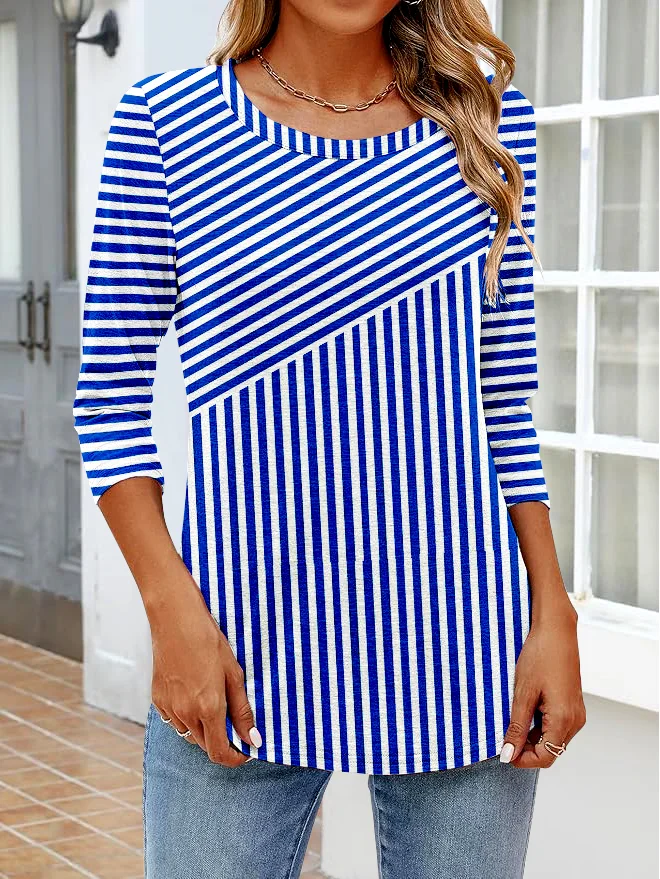 Vintage Plaid Crew Neck Long Sleeve T-shirt