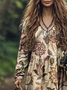 Women Botanical Pattern V Neck Long Sleeve Comfy Casual Maxi Dress