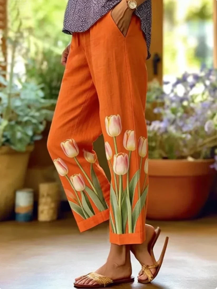 Women Floral Long Pants Casual Spring/Fall Trousers