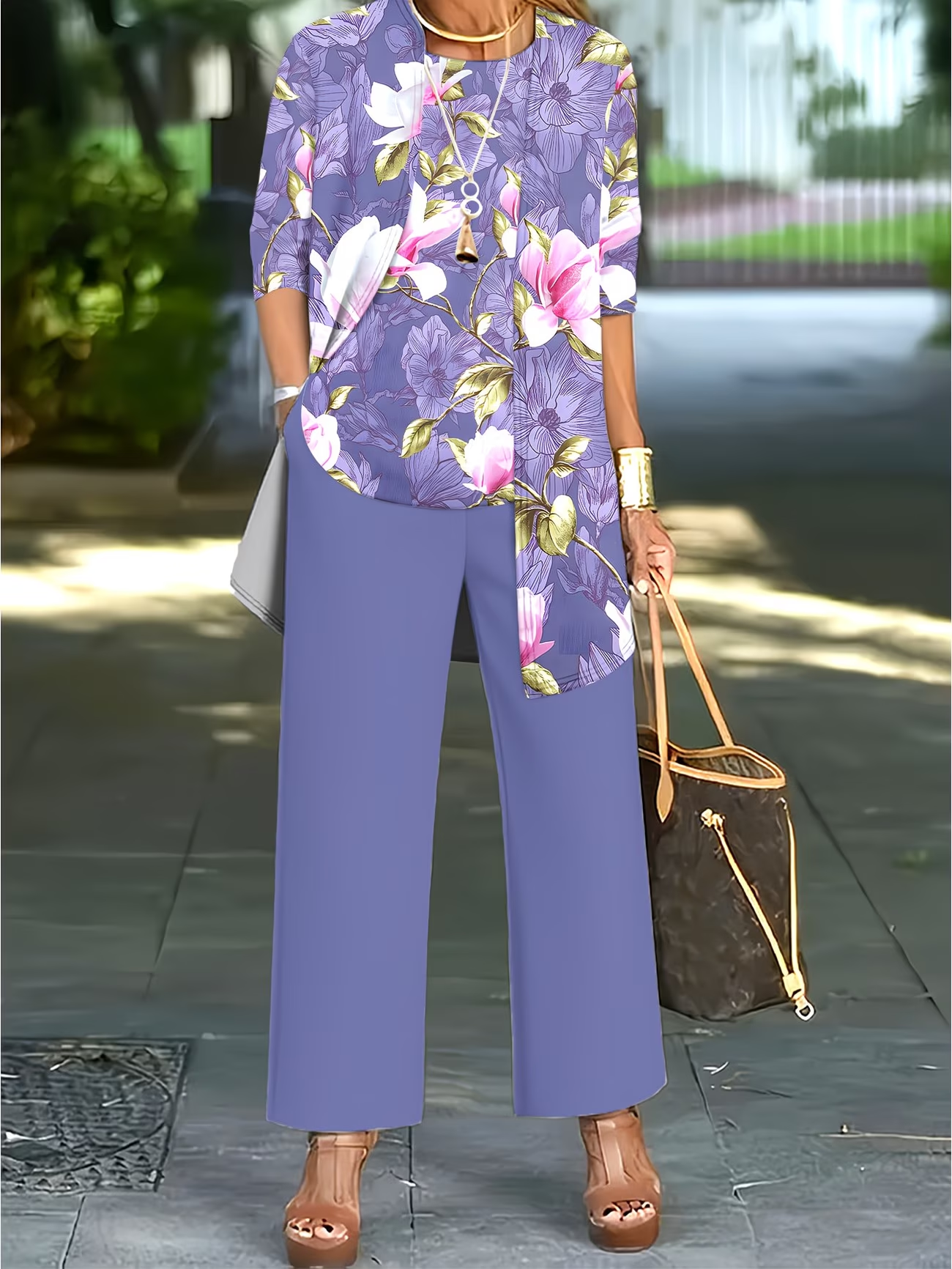 Women Floral Printing Matching Outfit Daily Long Sleeve Casual Spring/Fall Multi-Piece Set Matching Set