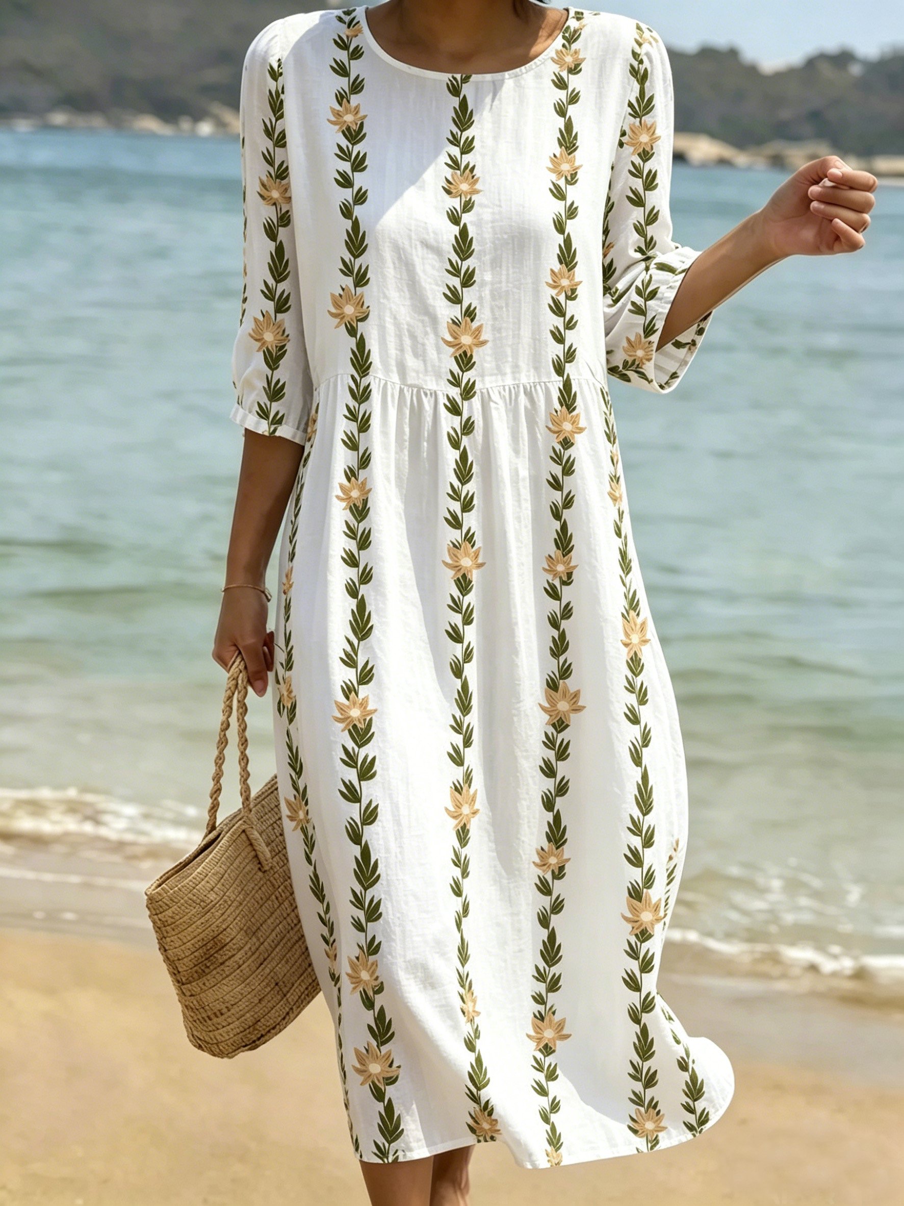 Women Floral Summer Dress Crew Neck Short Sleeve Fit & Flare Dress A-Line Dress