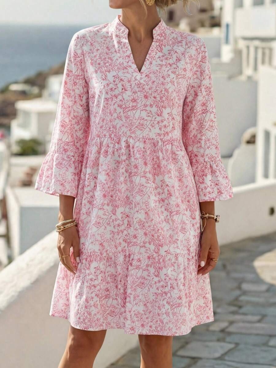 Women Floral Summer Dress Half Sleeve Shirt Dress A-Line Dress