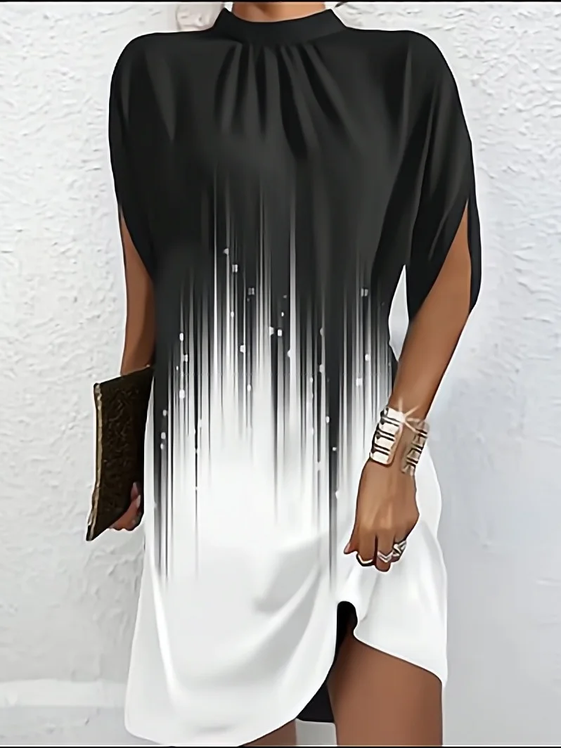 Women Geometric Dolman Sleeve Summer Printing Dress Crew Neck Short Sleeve Tank A-Line Dress