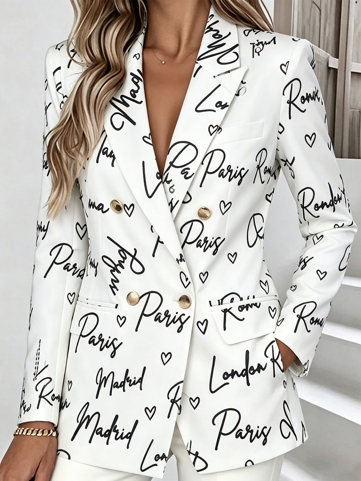 Women Geometric Spring/Fall Outerwear Elegant Long Sleeve Regular Blazer