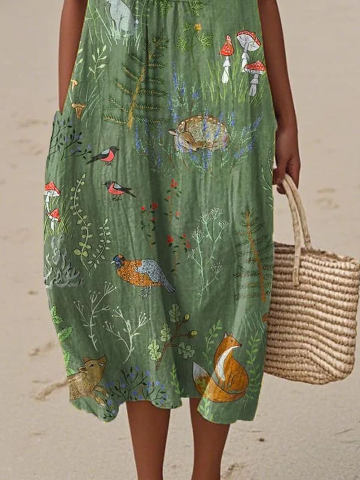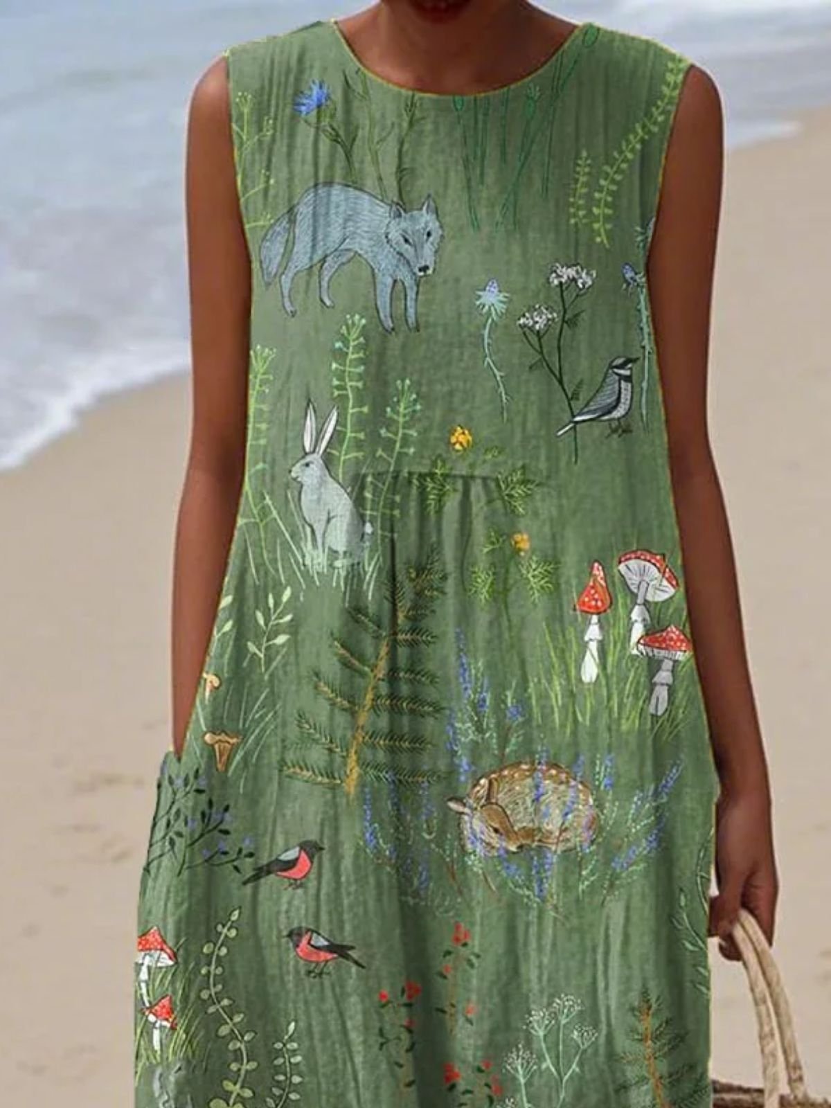 Women Painting Summer Dress Crew Neck Sleeveless A-Line Dress