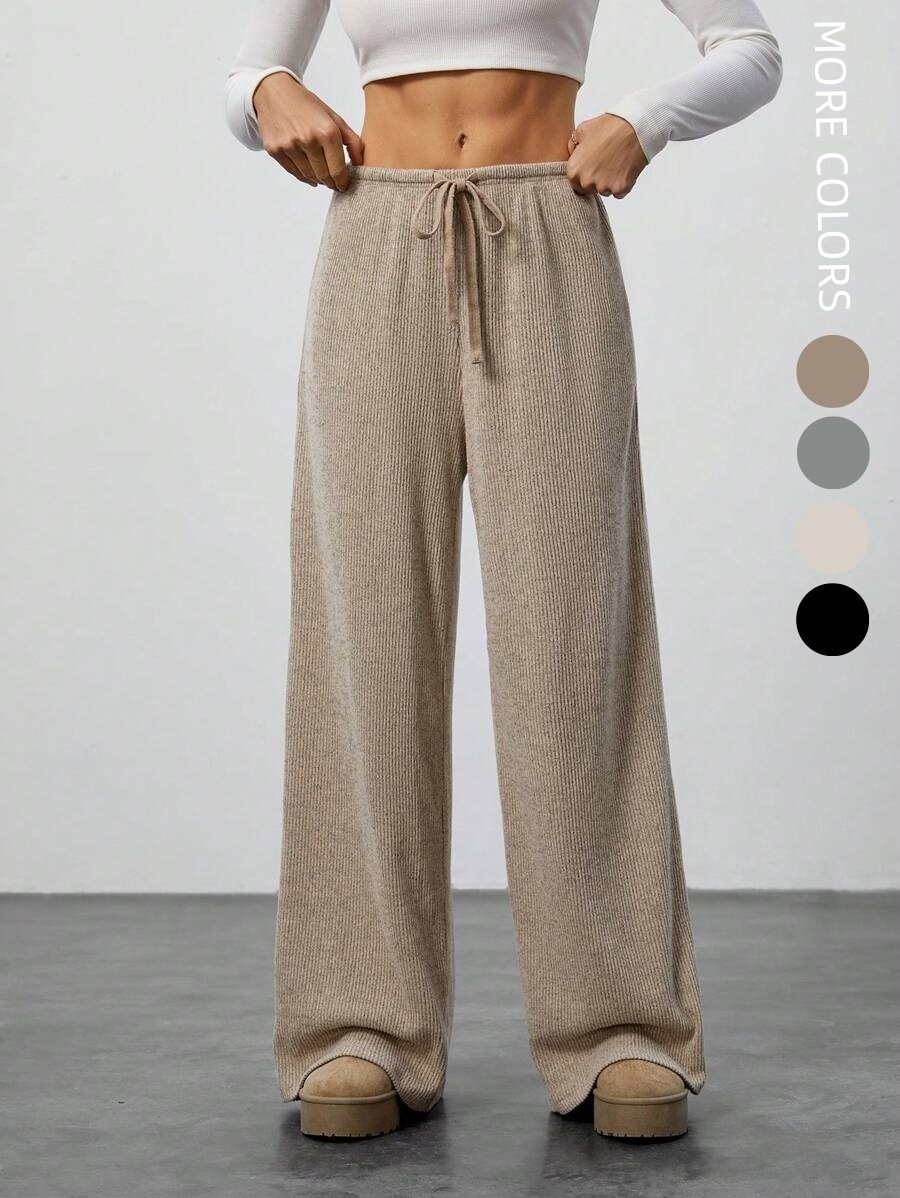 Women Plain Long Elastic Waist Pants Casual Spring/Fall Trousers