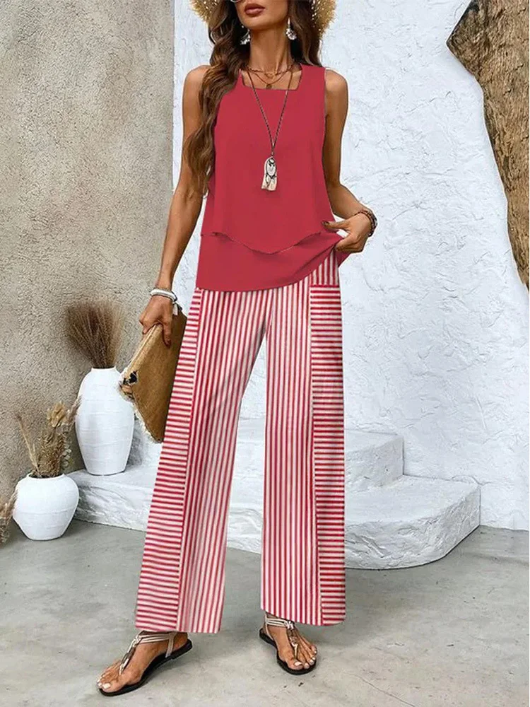 Women's Plain Daily Going Out Two Piece Set Sleeveless Casual Summer Top With Pants Matching Set