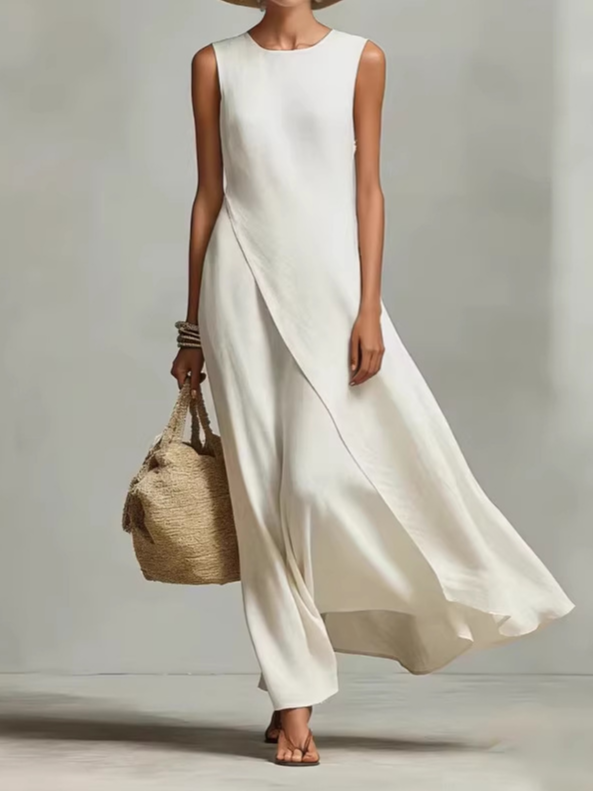 Women Plain Summer Dress Crew Neck Sleeveless Tank A-Line Dress