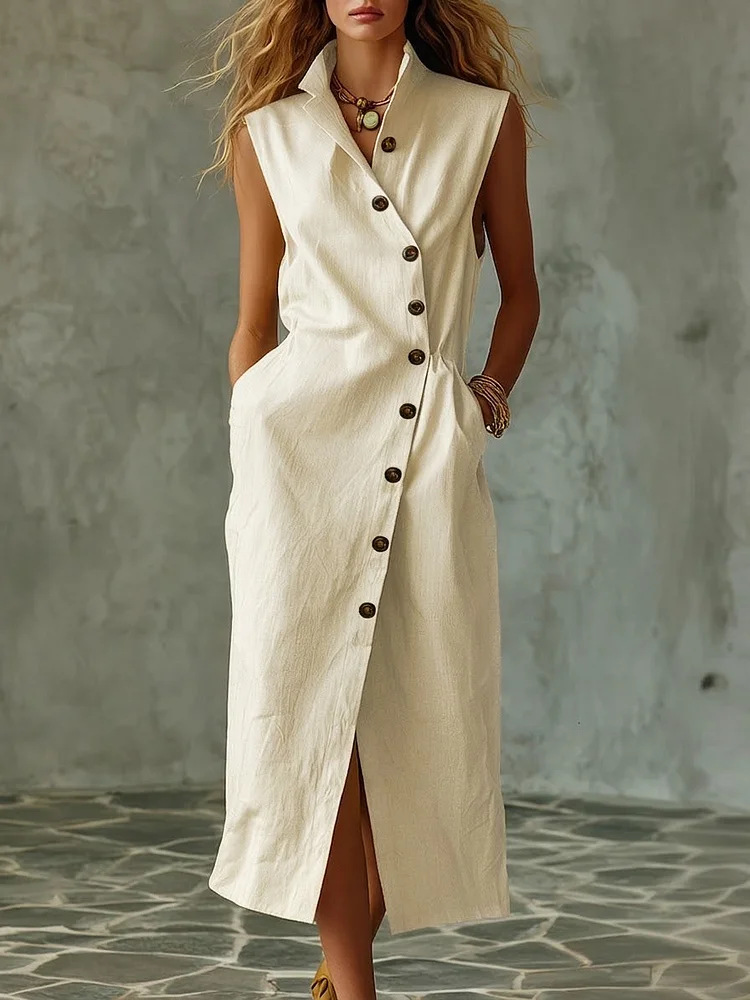 Women Plain Summer Dress Stand Collar Sleeveless Bodycon Dress
