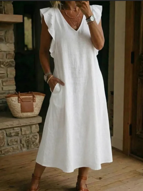 Women Plain Summer Dress V Neck Sleeveless Tank A-Line Dress