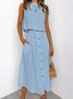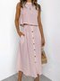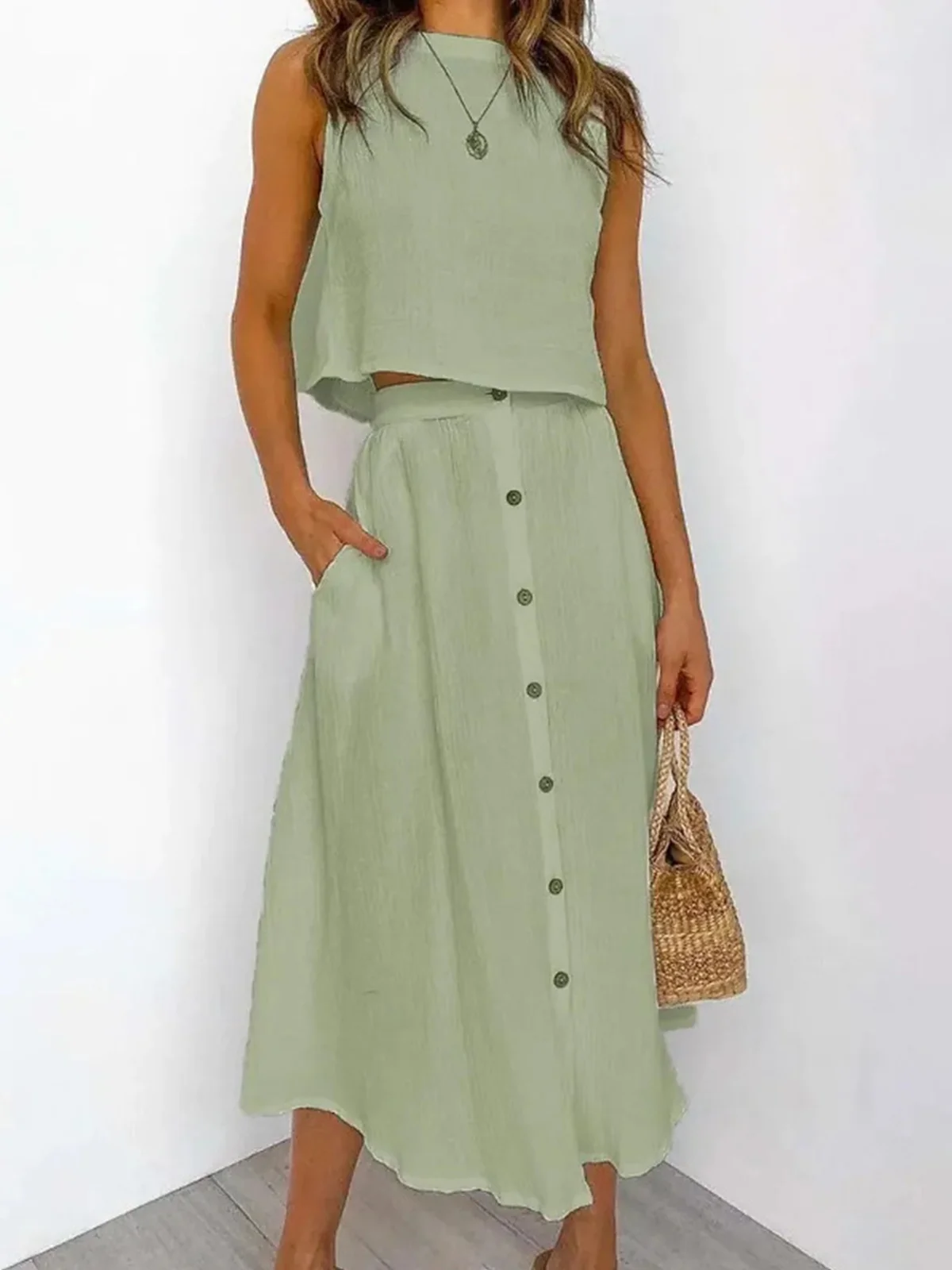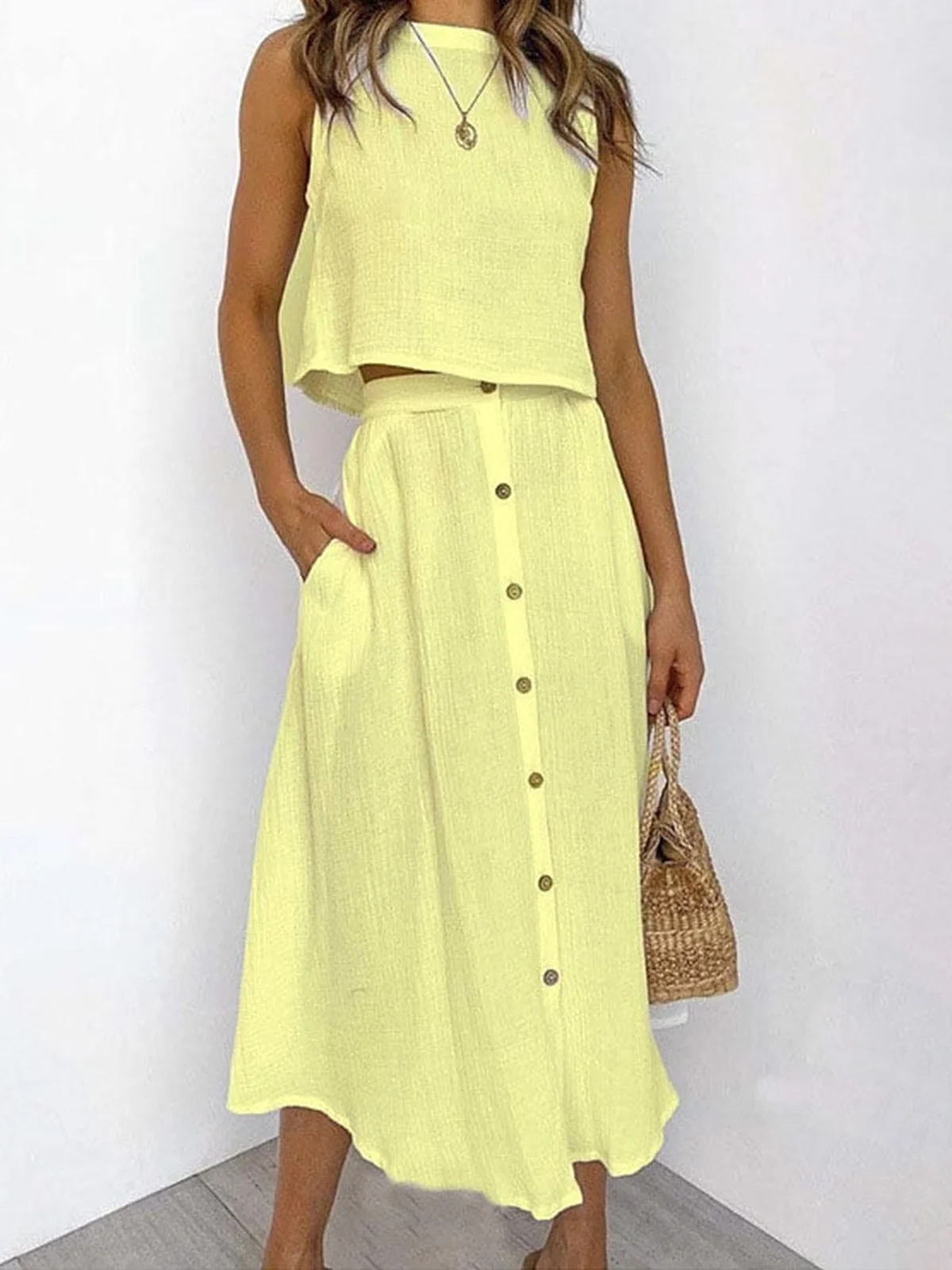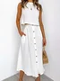 Women Plain Two-Piece Set Daily Sleeveless Casual Summer Top With Skirt Matching Set