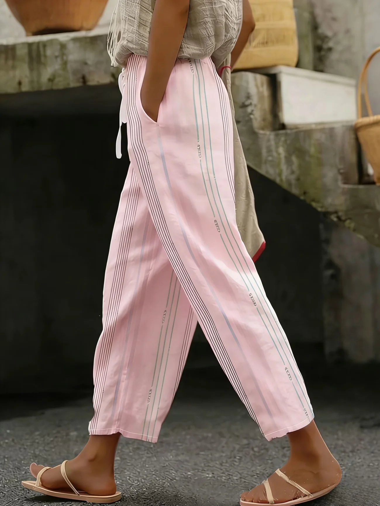 Women Striped Ankle Pants Pants Casual Spring/Fall Trousers