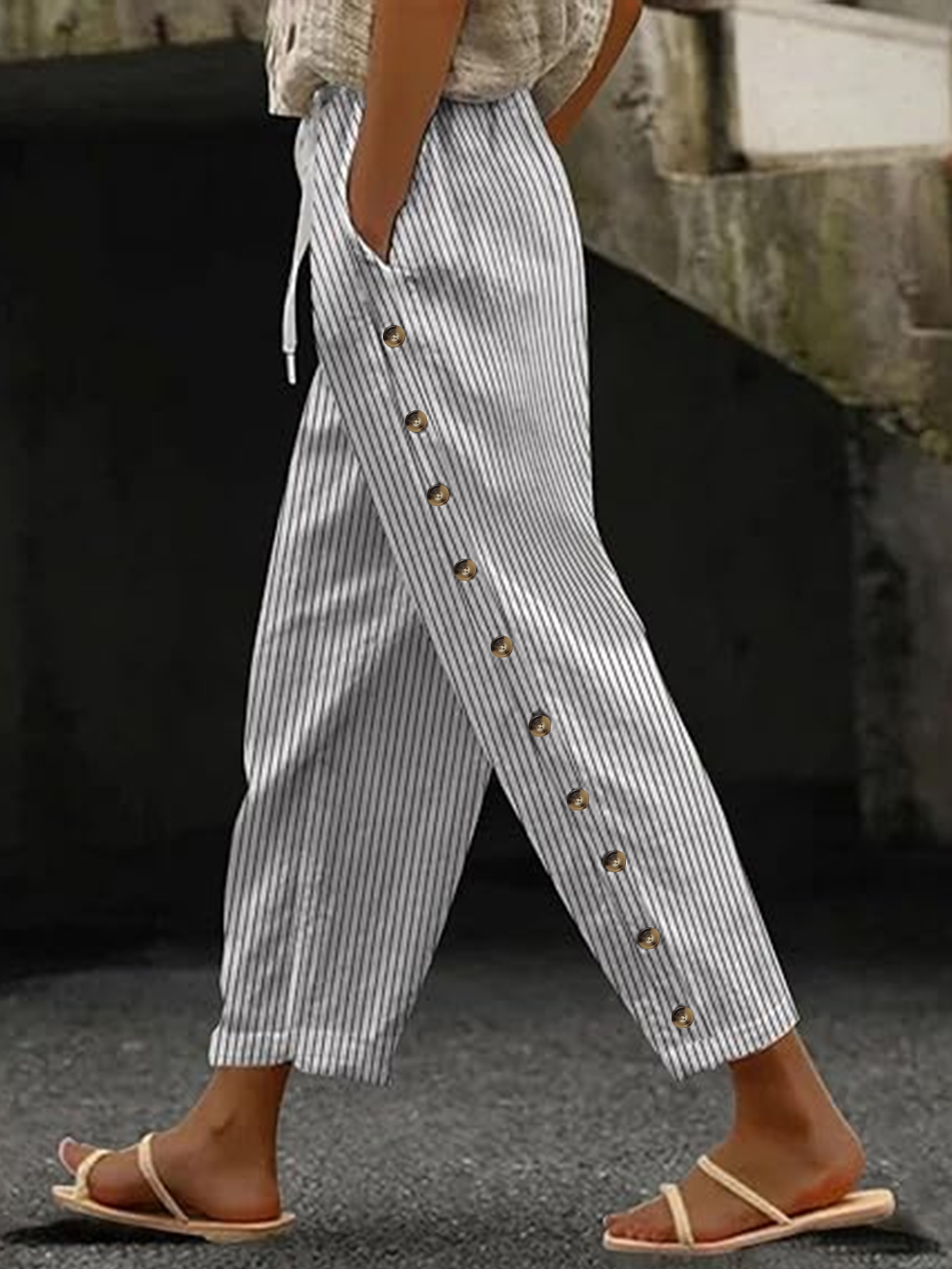 Women Striped Long Pants Casual Spring/Fall Trousers