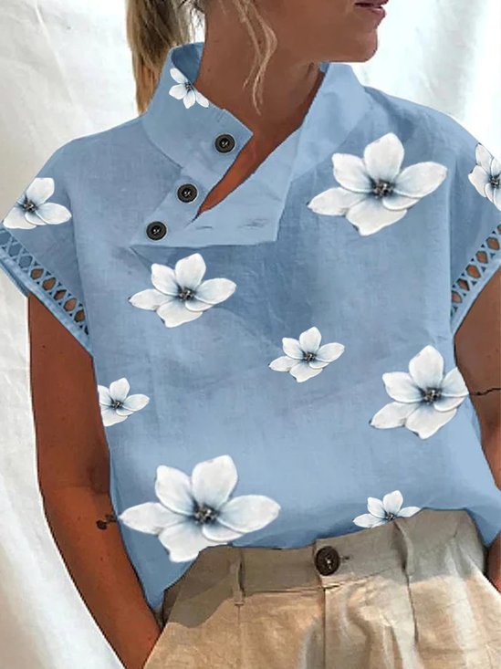 V Neck Half Sleeve Floral Printing Regular Loose Shirt For Women