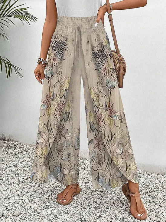 Casual Cotton Plain Long Elastic Waist Pocket Stitching Pants