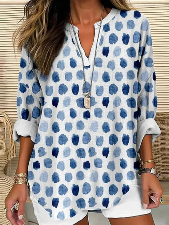 Women's Shirt Cotton Linen Button Up Floral Geometric Basic Blouse Casual Long Sleeve Shirt Collar Daily Top