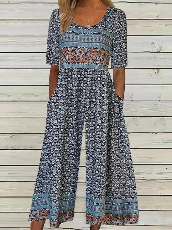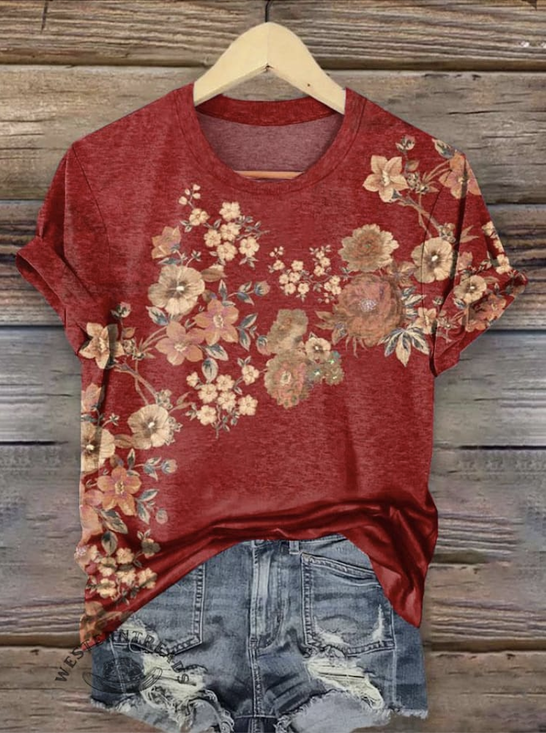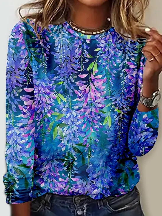 Vintage Floral Printing Crew Neck Long Sleeve T-shirt