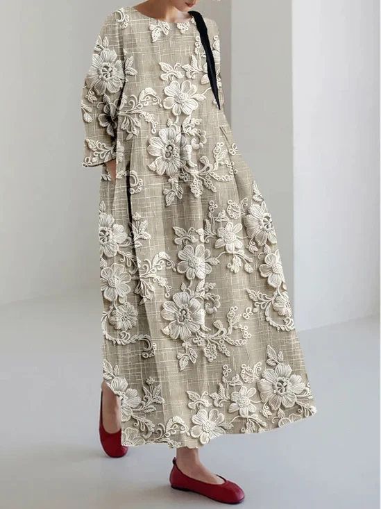 Women Plain Crew Neck Long Sleeve Comfy Casual Midi Dress