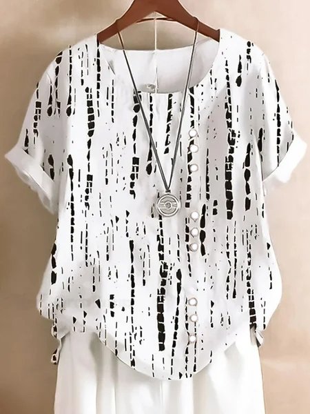 Women's Shirt Cotton Button Up Floral Geometric Basic Comfy Blouse