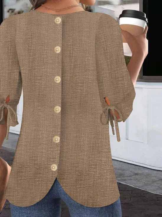 Shirt Collar Half Sleeve Plain Buckle Regular Micro-Elasticity Loose Shirt For Women