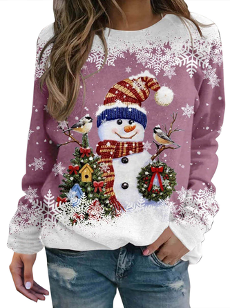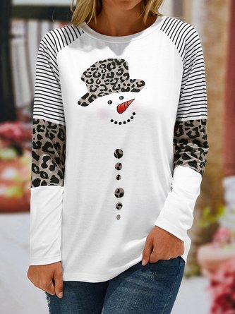 Casual Christmas Snowman Crew Neck Long Sleeve T-shirt