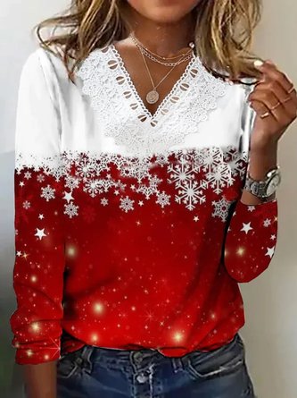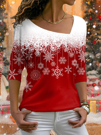 Casual Christmas Snowflake Print Long Sleeve T-Shirt