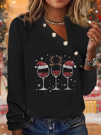 Casual Holiday Sequin Pattern V Neck Long Sleeve T-shirt