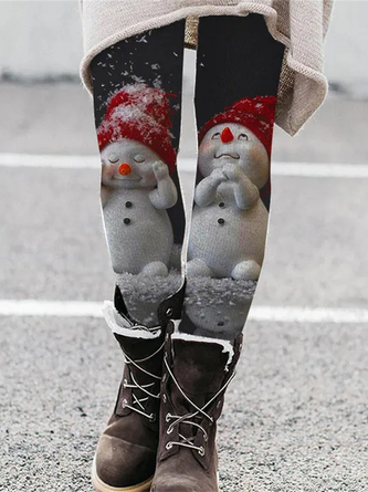 Women Christmas Snowman Casual All Season Printing Long Leggings