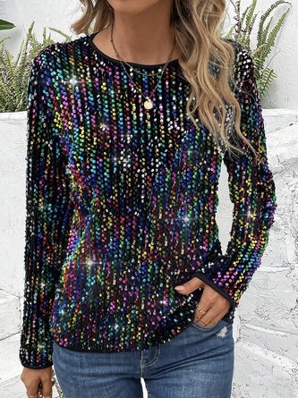Casual Holiday 3D Sequin Pattern Crew Neck Long Sleeve T-shirt