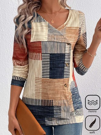 Casual Abstract Crew Neck Long Sleeve T-shirt
