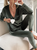 Women Plain Split Joint Two-Piece Set Daily Long Sleeve Casual Spring/Fall Top With Pants Matching Set