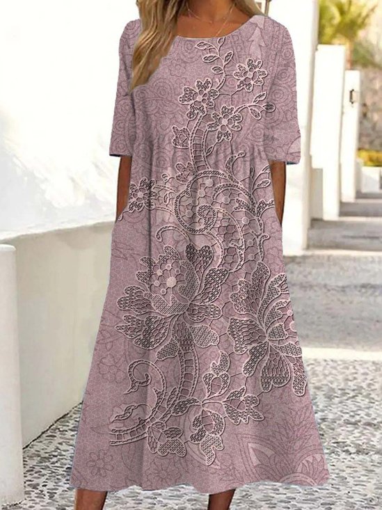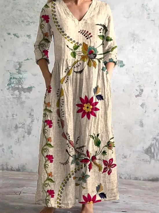 Women Floral Spring/Fall Split Joint Dress Shawl Collar Three Quarter Sleeve Fit & Flare Dress A-Line Dress
