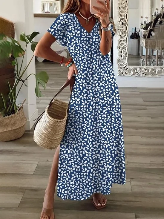 Women Floral Summer Printing Dress Shirt Collar Half Sleeve Hip Skirt A-Line Dress