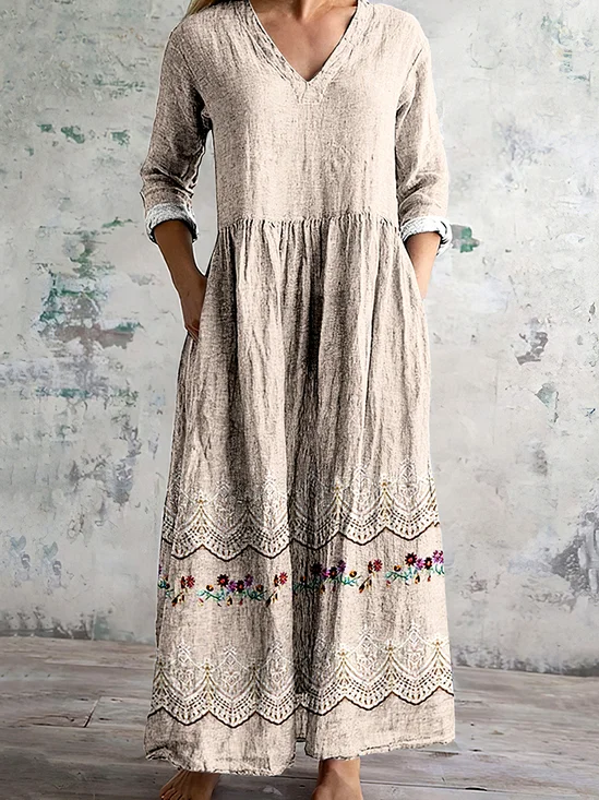 Women Plain Spring/Fall Dress V Neck Long Sleeve A-Line Dress