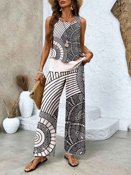 Women Floral Printing Two-Piece Set Daily Sleeveless Casual Summer Top With Pants Matching Set