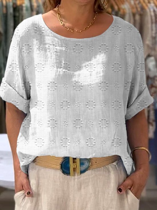 Shawl Collar Short Sleeve Polka Dots Regular Loose Shirt For Women