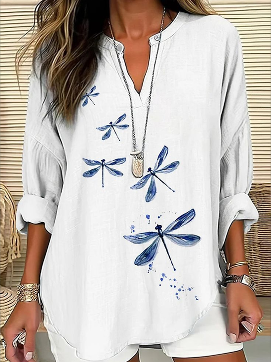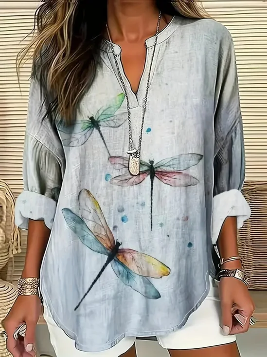 V Neck Long Sleeve Plain Regular Regular Fit Shirt For Women