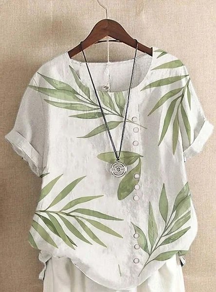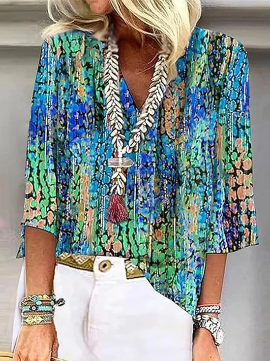 Crew Neck Three Quarter Sleeve Leopard Regular Loose Blouse For Women
