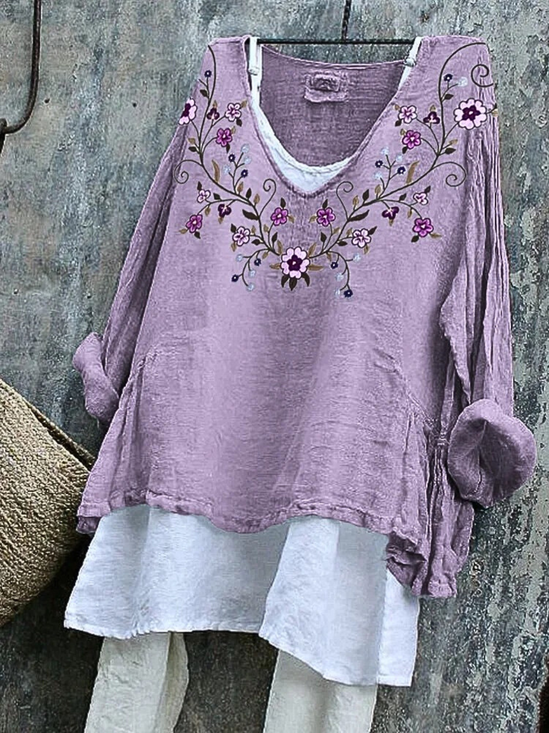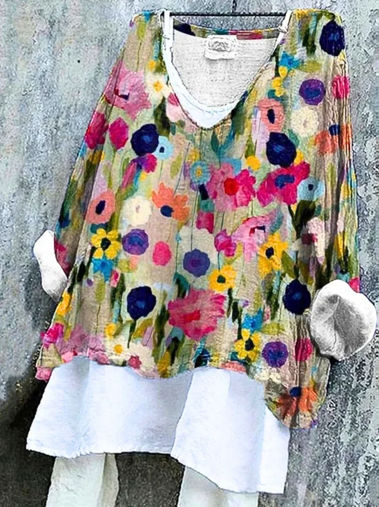Vintage Geometric V Neck Long Sleeve T-shirt