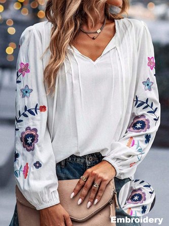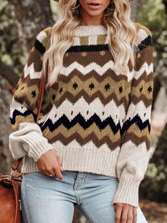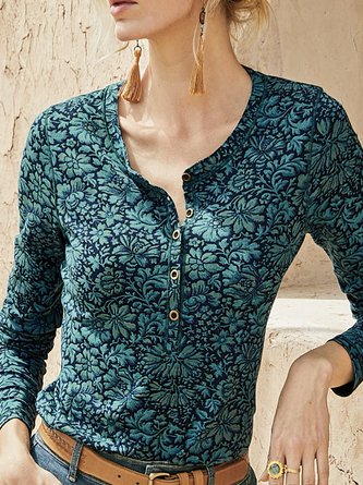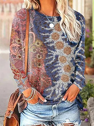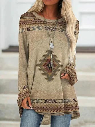Casual Ethnic Crew Neck Long Sleeve T-shirt