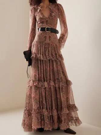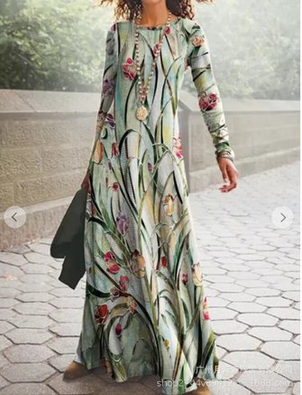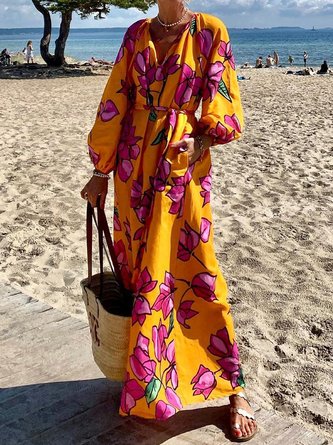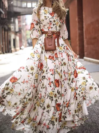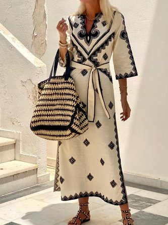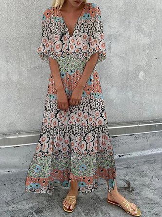 Women's Shift Dress Maxi Dress half Sleeve Floral Print Summer Fall V Neck Casual Geometric Printed Dress