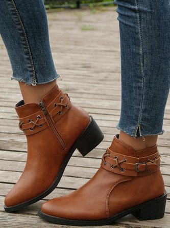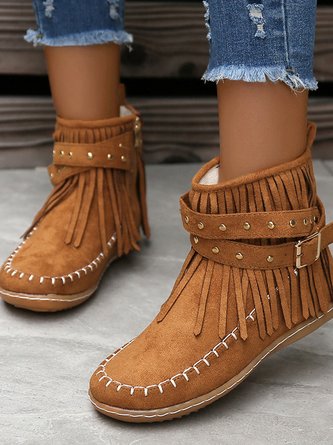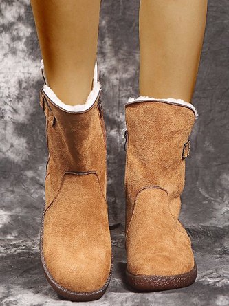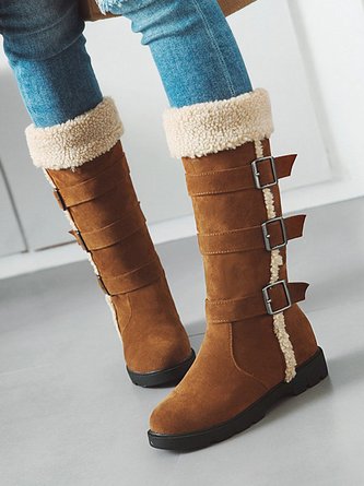Women Casual Soft Braided Strap Lether PU Flat Heel Snow Boots